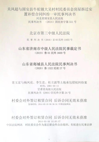 我(只是原告并非律师)在近期发现了一些案例,依据案例(见上图),难道天津和山东等其它的法院审案判决时使用的法律不同(天津可以用下位法《村民组织法》代替上位法《合同法》、《民法通则》)吗?村委会的错误行为由合同相对人承担符合情理吗?
